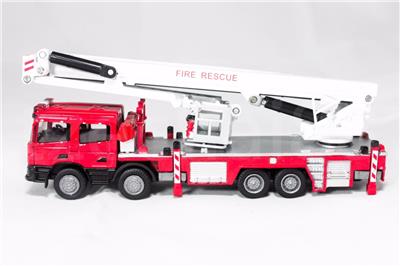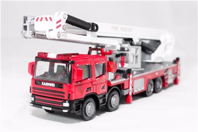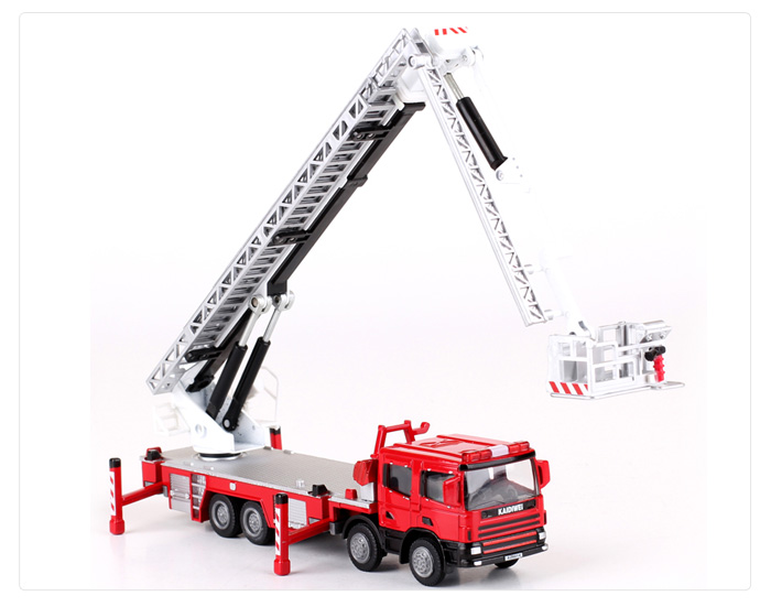 Kaidiwei 1:50 Die Cast Platform Fire Engine Truck Red Color Metal Model Collection Construction Vehicle Christmas New Gift