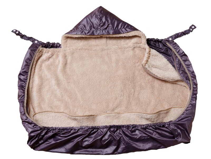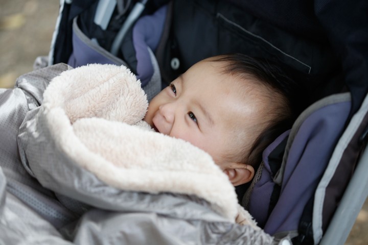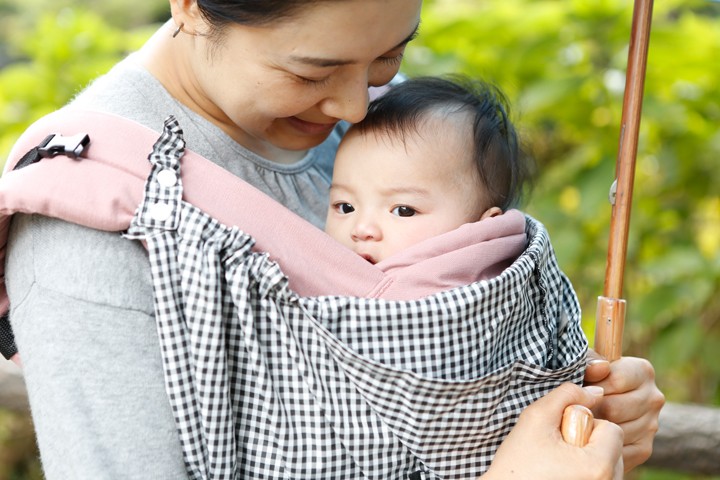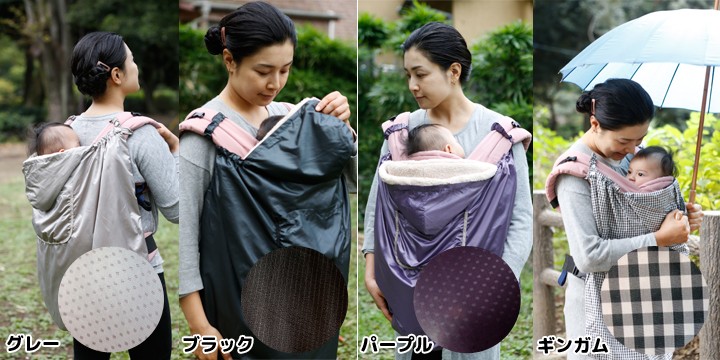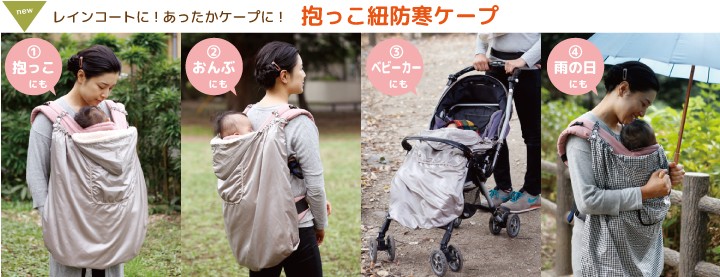 スナップボタンでワンタッチ簡単装着。抱っこにも、おんぶにも、ベビーカーにも使える「抱っこ紐防寒カバー」