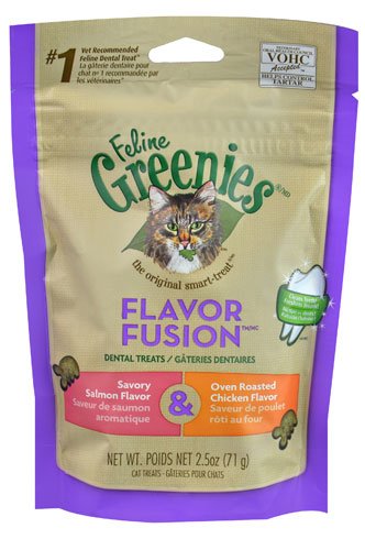 -. Title : Greenies Flavor Fusion Feline Dental Treats Savory Salmon & Oven Roasted Chicken -- 2.5 oz(packof2)