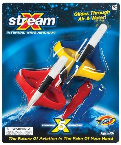 Product DescriptionToysmith X-Stream X-5 gliders are 5 inches long that can fly 30 yards or can be launched from under water; push glider to bottom of the pool, release and watch the self-propelled aqua glide.0