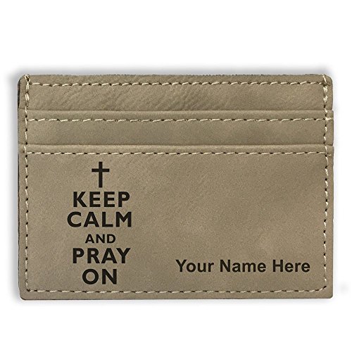 -. Binding : Apparel -. Brand : SkunkWerkz -. ClothingSize : Medium -. Color : Light Brown -. Department : mens -. EAN : 0654975840484 -. Feature : The Money Clip Wallet is laser engraved with the image that you see in the photo. / Your name or personalized message will be engraved on the wallet for free. / Synthetic leather construction. Includes space for 3 credit cards. / You may have one line of engraved text - 20 characters maximum. / Click the "Customize Now" button to begin customizing your wallet. -. ProductGroup : Apparel -. ProductTypeName : ACCESSORY -. Size : Medium -. Title : Money Clip Wallet - Keep Calm and Pray On - Personalized Engraving Included (Light Brown) -. UPC : 654975840484
