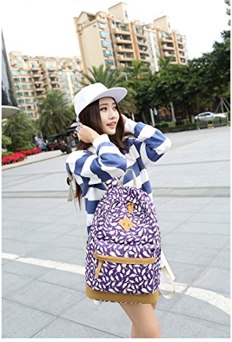 -. Title : Generic Canvas Feathers Pattern Pattern Personality Backpack (Purple)