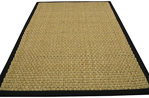 -. Title : Safavieh Natural Fiber Collection NF114C Basketweave Natural and Black Seagrass Area Rug (3' x 5')