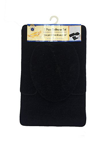 -. Feature : 3 Piece Bathroom Set-Black, Bath mat / Contour rug / Toilet seat cover