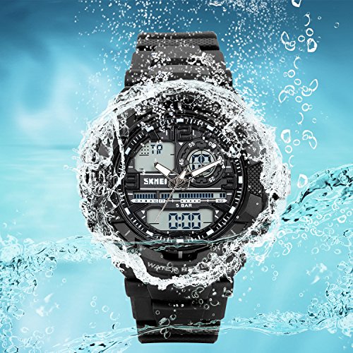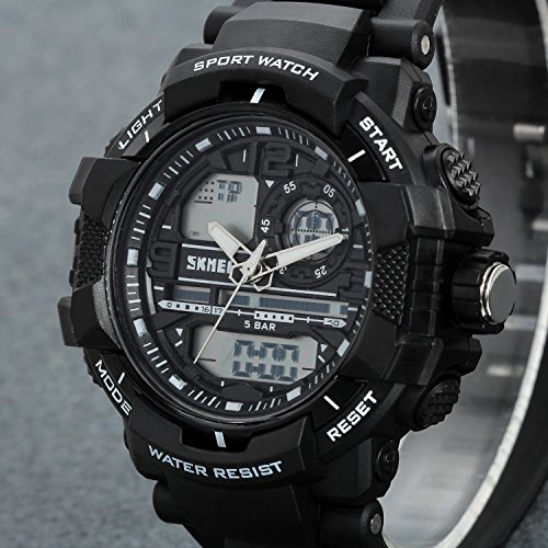-. Title : Lancardo 50M Water Resistant Dual Display 2 Time-Zone Digital Military Army Led Sports Watch(Silver)