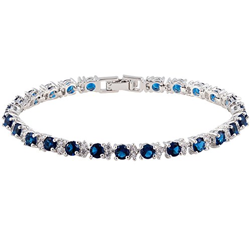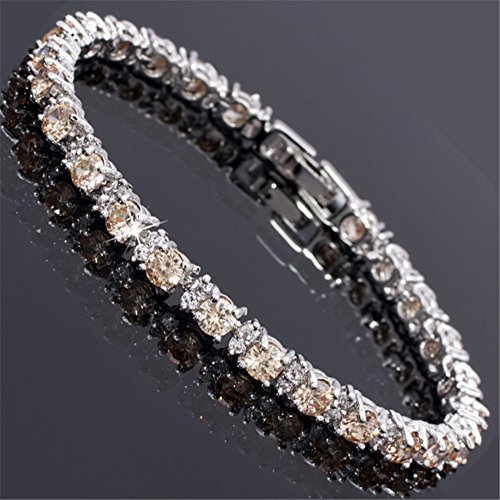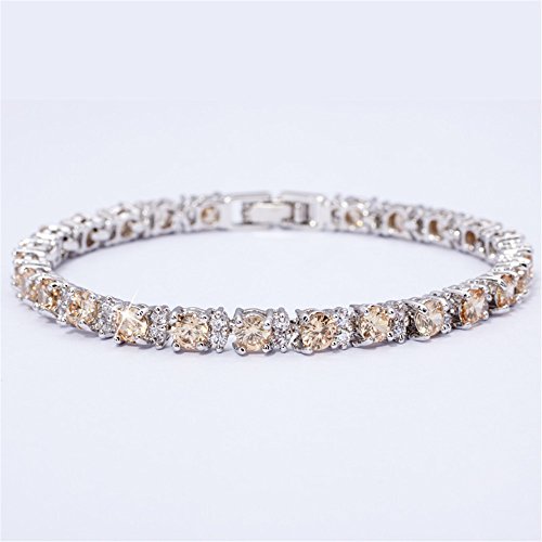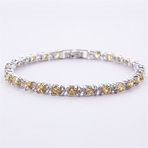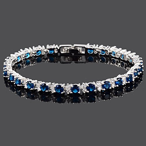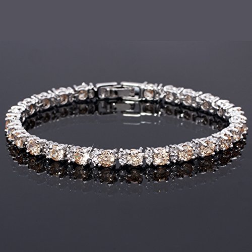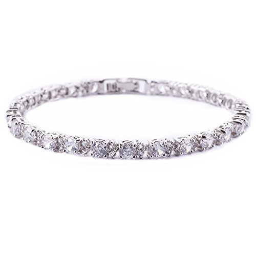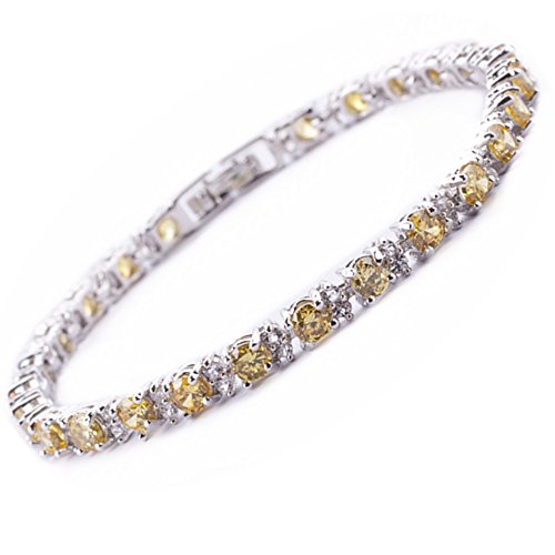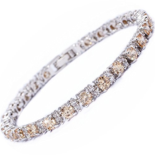 -. Title : Riva Schmuck Rundschnitt Geburtsstein Edelstein Feine 18K Weißes Gold Vergoldet [180mm / 7 inch] Tennis Armband Moderne Eleganz [Free Schmuckbeutel]