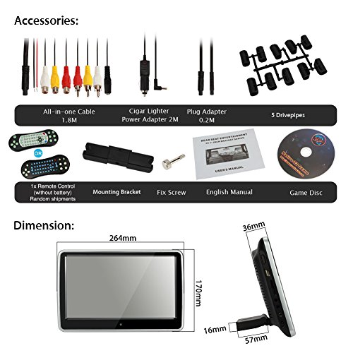 -. Title : NAVISKAUTO(TM) 10.1 Inch TFT LCD Wide Digital Touch Screen Universal Car Headrest DVD Player Multimedia Monitor with Remote Control-Black