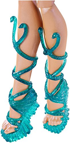 With the promise of extra-bright lights in the big city, the Monster High ghouls are heading to Boo York City in their first musical, Monster High Boo York, Boo York! There, they hope to witness the historic passing of the Crystal Comet at a hair-raising gala and monster skull-ebration. Turns out the stage isn’t the only place for drama -- things get catty between Nefera de Nile and Catty Noir. The two (sold separately) battle it out in to-die-for comet-inspired gala outfits with metallic materials and faceted sculpting detail. Nefera de Nile doll, daughter of the Mummy, is ready to rule in a dress with golden snake-decorated bodice, dramatic shoulder and metallic signature teal skirt. Mummy wrap-inspired teal shoes, a snake-decorated headband, scary cool earrings and teal fingerless gloves are wicked cool. Plus, a piece of the “comet crystal” is out of this world! Use the doll stand and doll hairbrush to style Nefera doll to capture a monsterrific moment. For a full cast of ghoulish characters, collect all of the Monster High Boo York dolls (sold separately). Includes Nefera de Nile doll wearing fashion and fashion accessories, one piece of “crystal,” a doll stand and doll hairbrush. Doll cannot stand alone. Colors and decorations may vary.Feature
