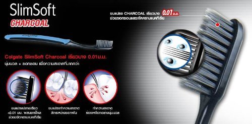-. Title : Colgate Slim Soft Charcoal Toothbrush Ultra Soft 0.01mm. Slim Tip Bristles 3 pcs.