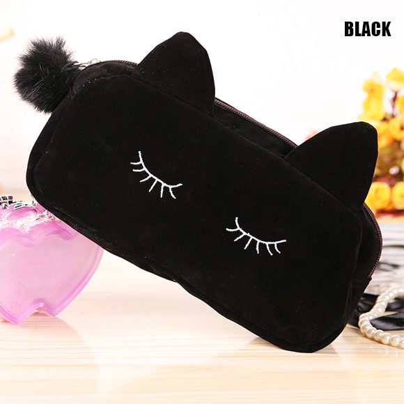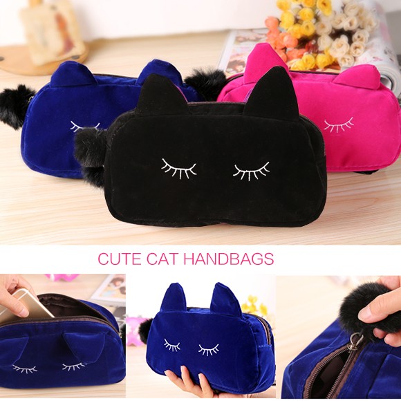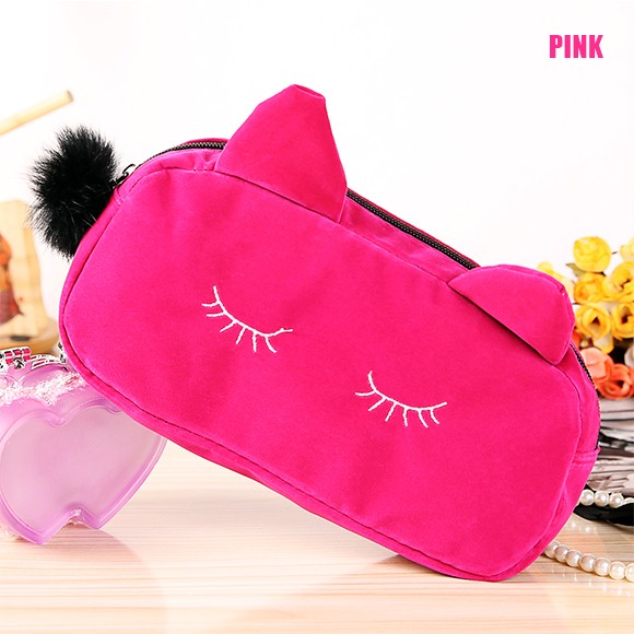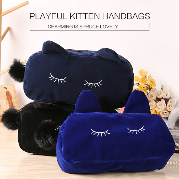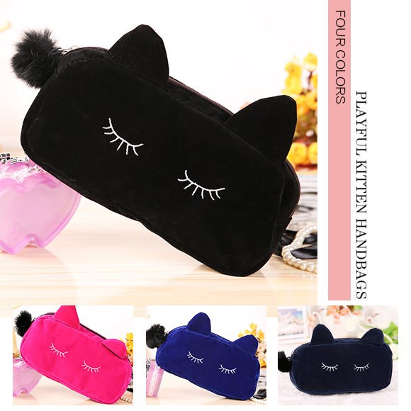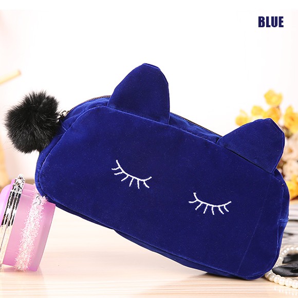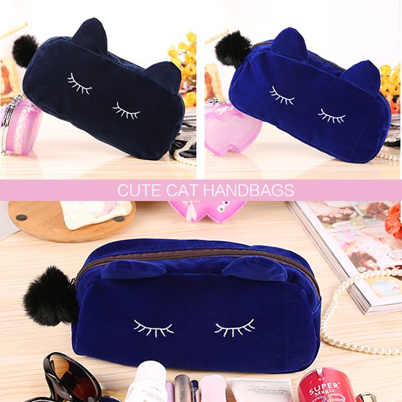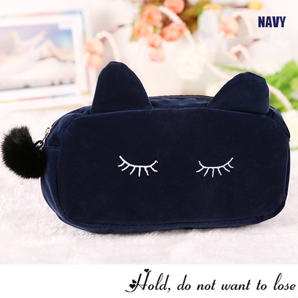 ねこ好きにはたまらない★レディース用コスメポーチです!肌ざわりのいいベロア風の生地を使用した高級感のあるミニポーチ♪メイク道具はもちろん、文房具を入れたり、小物入れとして使っても◎キュートな猫耳がついたデザインで、愛され度120%のアイテムです♪♪【商品詳細】カラー:ブラック/ネイビー/ブルー/ピンクサイズ 縦:約10cm 横:約23cm マチ:約5.5cm素材:ベロア(ポリエステル)