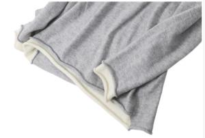 重ね着のように着崩れする心配がなく、ごわつき感もないので綺麗なシルエットになりますよ。