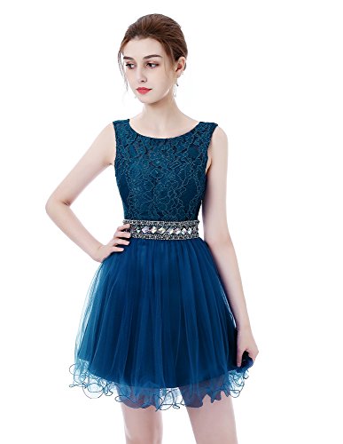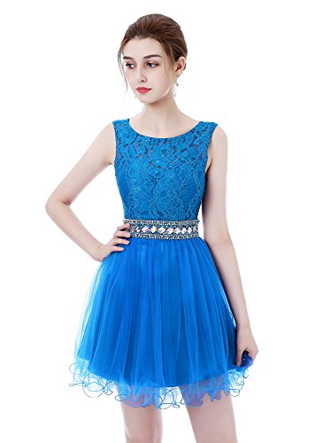 Mini Open Back Beading Lace Appliques Evening Prom Homecoming Dresses with Beads