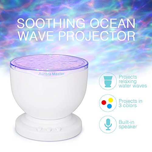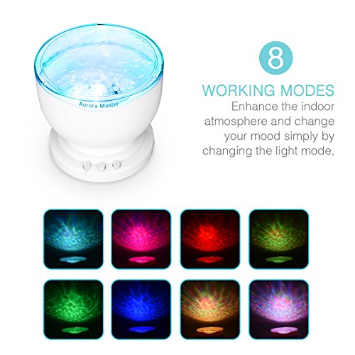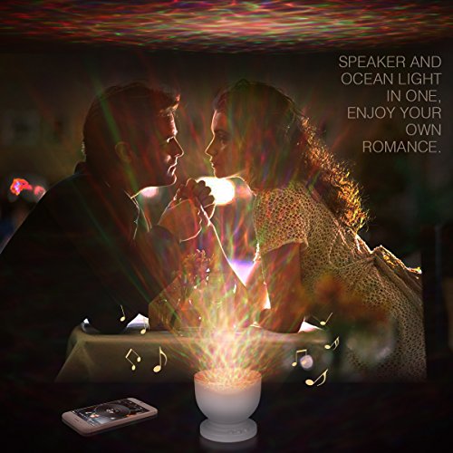-. Feature : Create Relaxing Environment -- The projector creates romantic atmosphere by changing the color modes which allow customers feel cozy after whole day working and commute. Best apply to bathrooms, the living room, bedroom or any space. / 8 Wave Modes -- Changing colors by various speeds, adjustable from 0 Degree to 30 Degree for maximum relaxation allows you to feel immersed in the deep sea and embrace peace. / Built in Speaker -- Built-in mini speaker, customers can enjoy music simply plug it into phone, mp3, or computer via audio cable. All the key functions are easily accessible VIA TOUCH BUTTONS that allow you to easily turn ON/OFF the speaker, change volume or choose the ocean wave light color for the preferred mode. / Advanced Features -- This ocean wave night light projector has incredible features like realistic ocean waves, minimal design touch buttons, and the ability to change light color alternately at different speeds which are designed for customers to enjoy the undulating ocean-like sea waves at home every now and then. / Automatic shutdown -- Auto shutdown after 1 hour working, perfect for using in bedroom and accompany your baby before sleeping.