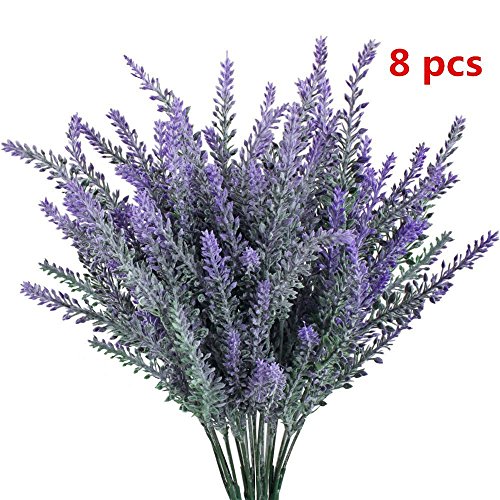 8 Bundles Artificial Lavender Bouquet Flowers Arrangements - Vase Not Included