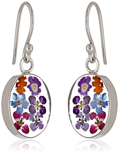 -. Title : Sterling Silver Pressed Flower Small Oval Drop Earrings