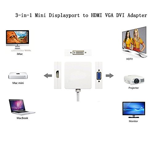 Mini displayport (Thunderbolt 2) to VGA/HDMI/DVI 3-in-1 video adapter converter lets you connect your mini-dp equipped device to a high definition monitor, projector