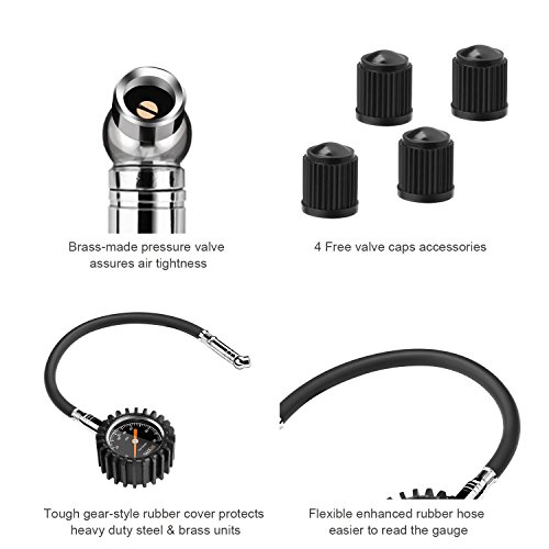 - ▲MECHANICAL AND PRECISE TIRE GAUGE - Calibrated according to the ANSI B40.1 Class B (± 2%) International Accuracy Standard, ensuring that you get a correct and accurate pressure reading; No batteries required is suitable in all weather conditions