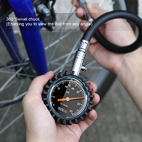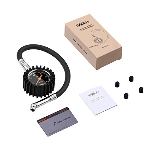 Tacklife TPS02L Classic Tire Pressure Gauge 0-60 PSI Large 2" Heavy Duty with Integrated Hold Valve, Premium Rubber Hose for Your Car, Motorcycle, Truck, SUV, RV or ATV,4 Free Valve Caps Included