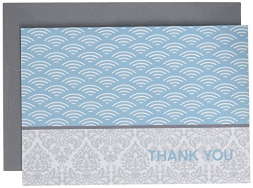 Product DescriptionExpress your gratitude with these Blue and gray thank you note cards. Pack contains 10 note cards and 10 gray envelopes.0