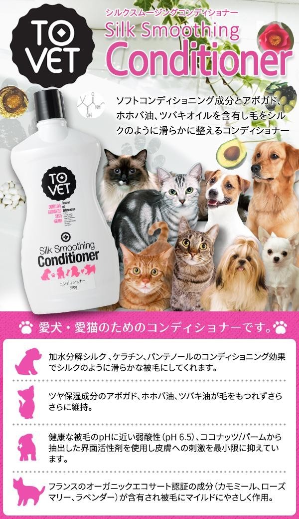 ソフトコンディショニング成分とアボガド、ホホバ油、ツバキオイルを含有し、被毛をなめらかに整えるコンディショナーです。 |