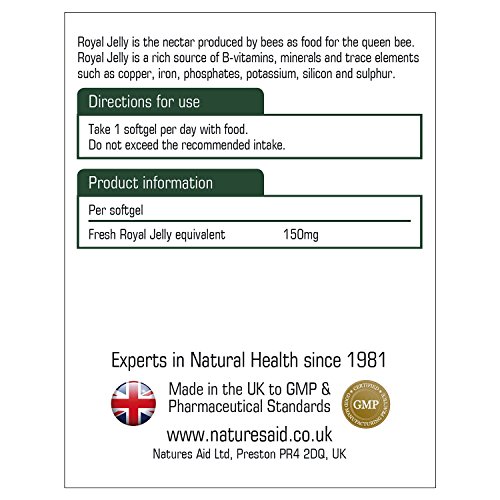 Product DescriptionNatures Aid Royal Jelly 150mg - Pack of 30 Capsules0