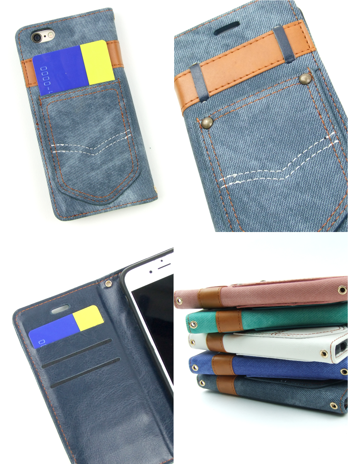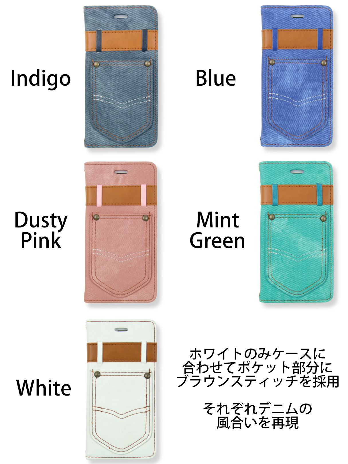 【iPhone6s/6】【オリジナルデザイン】 フェイクデニムポケット付き手帳型ケース キュートでビンテージなカジュアルiPhoneケース ポケット×2 ベルト カードケース×3★当店完全オリジナル商品!!★周りと差を付けるなら、絶対にコレっ!!◆デニム ポケット付き 手帳型ケース◆デニムパンツデザインが!iPhoneケースに!!誰もがダイスキなカジュアルの王道“デニム”がキュートなデザインのケースに変身!ベルトループやスタッズなど、1個1個、細部にまでこだわり続けて、時間をかけて作ったデザインです★目を引くポケットの部分は実際にカードなど、両面ポケットとも、収納可能。フェイクデニムなので実際のデニムと違い、水気や汚れにも強く、触り心地もバツグン★生地独特のクッションで、中身のiPhoneをしっかり守ってくれます。当店の別売りのストラップなど、自分のスタイルに合わせてアレンジしてみては?!全5色※ご利用のモニター、ディスプレイにより若干色味に差がある場合がございます。ご了承ください。※商品の生産時における装飾等は手作業で行っており、多少の差異がある場合がございます。ご了承ください。