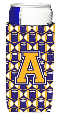 Letter A Football Purple and Gold Ultra Beverage Insulators for slim cans CJ1064-AMUK