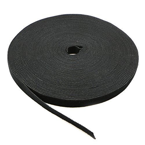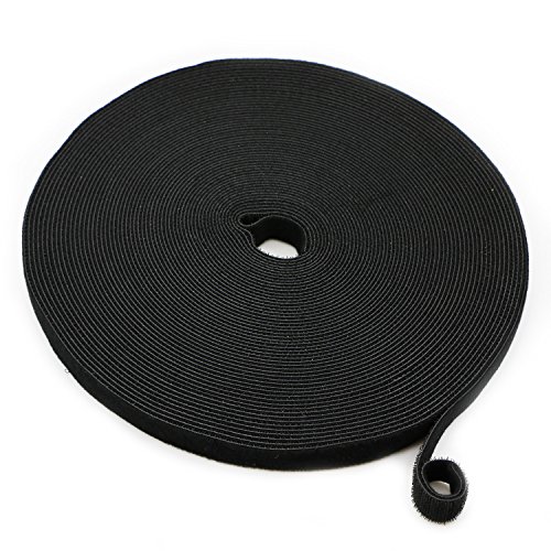 Saisn Reusable Fastening Tape Cable Ties Double Side Hook Loop Strap Roll (25 Yard, Black)