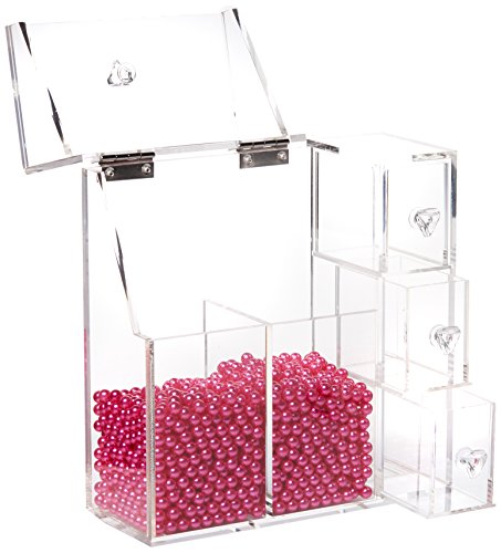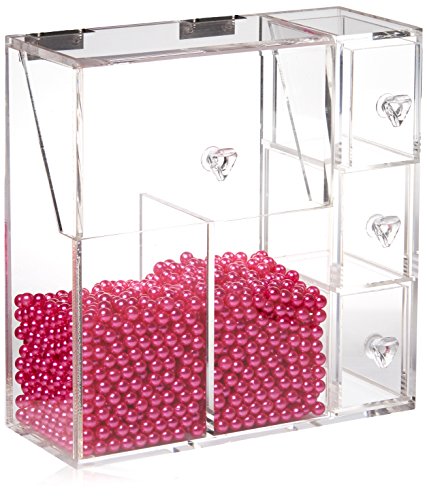 PuTwo Makeup Organizer With 2 Make Up Brush Holders and 3 Drawers All In One Case with Free Rosy Pearl