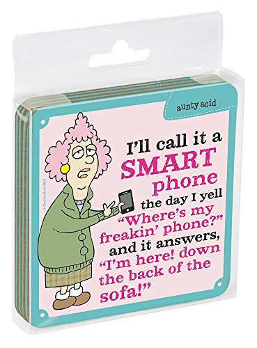 Tree-Free Greetings Set of 4 Cork-Backed Coasters, 3.75 x 3.75 Inches, Aunty Acid Not So Smart Phone (EC96621)