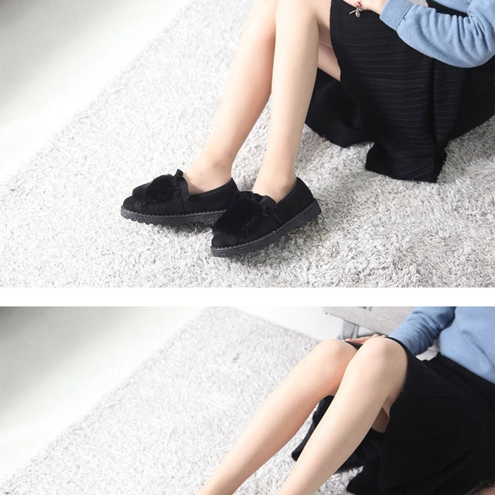 商品名:フラットパンプス レディース ペタンコ スエード調 フェイクファー 2017 秋 冬 ファッション 靴 婦人靴