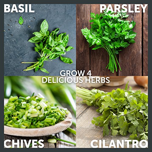 🌱 EVERYTHING YOU NEED TO EASILY GROW 4 CULINARY HERBS AT HOME, IN ONE SLEEK BOX: 4 biodegradable growing pots, 4 moisture-proof organic seed packets, 4 soil discs that expand to 7 times their size when watered, 4 beautiful bamboo plant markers, 1 herb grinder and a beautiful, comprehensive instruction booklet. Grow the following 4 tasty herbs: Basil, Cilantro, Chives and Parsley.
