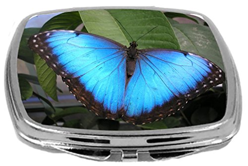 Rikki Knight Compact Mirror, Bright Blue Butterfly on Green, 3 Ounce