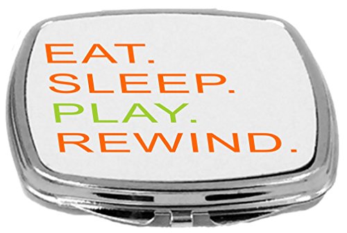 Rikki Knight Eat Sleep Play Rewind Orange & Green Design Compact Mirror