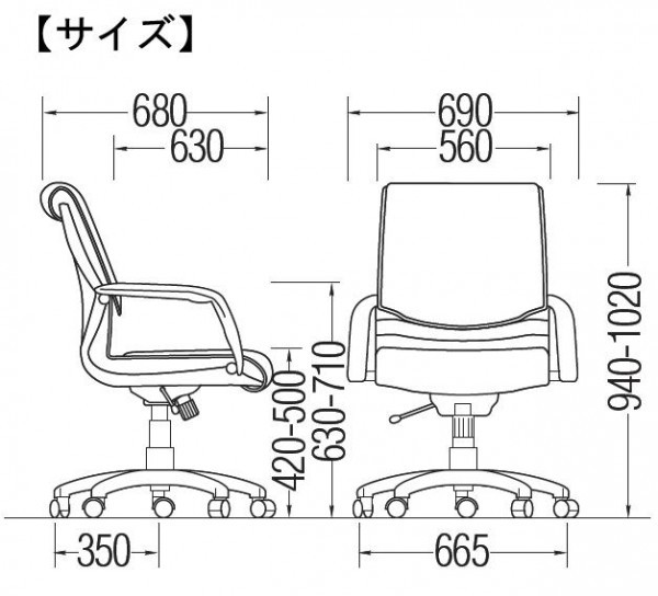 サイズ外寸:幅690×奥行680×高さ940~1020mm、座面高さ:420~500mm