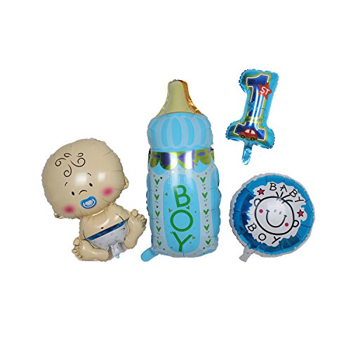 -. Feature : 4pcs 1ST Birthday party decoration balloon, P.R.Inted with cute characters and colors that children may like. / Number One Shaped Balloon(measured 14" in length & 9.5" in width),This design helps everyone know the theme of your little boy`s birthday party / Baby boy shaped balloon (measured 27" in length & 17" in width)and a round 16"balloon are P.R.Inted with a lovely baby boy pattern. / Milk bottle shaped balloon (measured 31"in length & 17" in width), Baby do like milk bottle! / Just one click, having them at home and it is a perfect idea for your little boy`s birthday party.