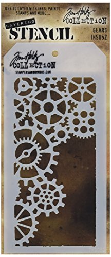 Stampers Anonymous THS052 Gears Tim Holtz Layered Stencil, 4.125" by 8.5", White