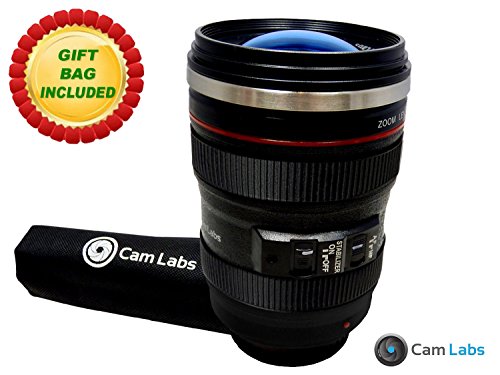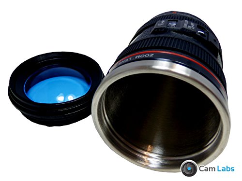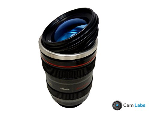 The CamLabs Camera Lens Mug is a superior replica of the authentic Canon 24-105mm f/4 L IS lens. It has clear lens-like lid that combines functionality and style. This lid fully closes to prevent coffee, tea, or any liquid from spilling.