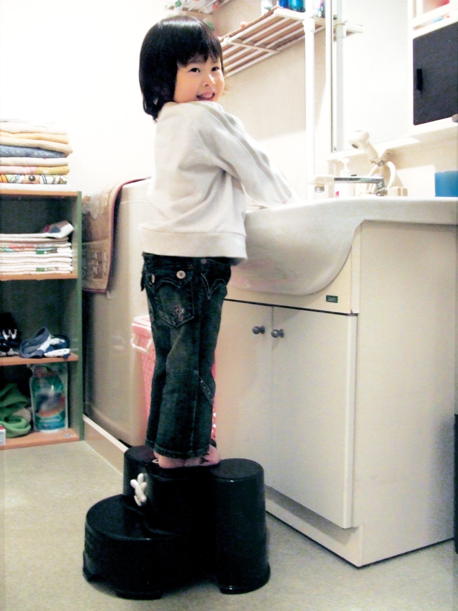 A big success in a toilet and a washroom for a child who can not reach it