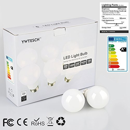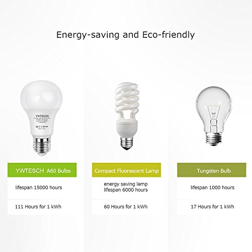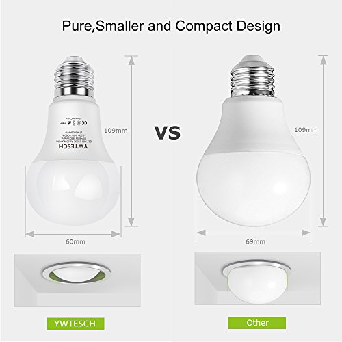 A19 LED Light Bulbs YWTESCH 9W (60W Equivalent) Non-Dimmable 5000K Daylight, 840-Lumen, E26 Medium Base, 220 Degree Beam Angle, Pack of 6