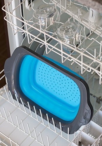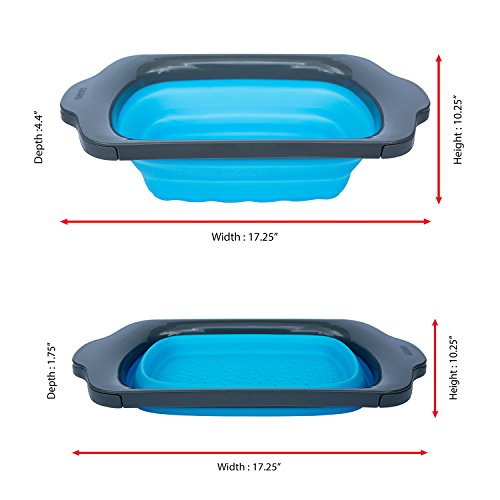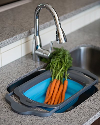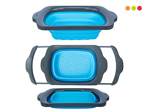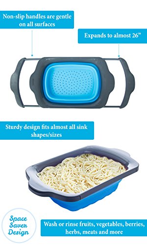 Collapsible Kitchen Colander - Over the Sink Kitchen Strainer By Comfify | 6-quart Capacity | Blue & Grey
