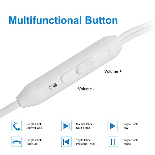 MULTIFUNCTIONAL:Wired earphones with microphone has Three Buttons: Answer Calls / End Calls,Play/Pause music, Volume Down/Up, Previous Track/ Next Track Hands-free microphone and remote control allow you to easily answer calls, end calls, volume control, play music