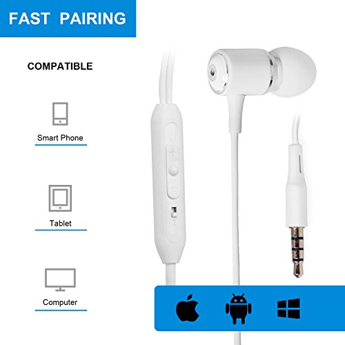 SMARTED Wired Earphones with microphone Remote Control Mic Volume for iPhone/iPod/iPad All Samsung Galaxy S6/S7/Note 4/5/6 (White)
