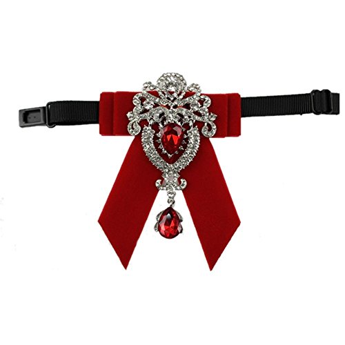 (BanWood)/Accessories/Ties/DIRECT FROM USA/BanWood Unisex Red Gemstone Pandent Collar Tie High-end Velvet Bow Tie (Red)