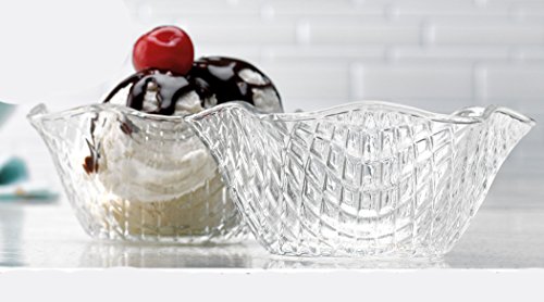 These are great glasses. The design is classic, clean, and unfettered. The glasses are sturdy, and are unmistakably for desserts. Beautiful stems and ringing glass, Fruits or Ice cream look fantastic in these and sit very stably and very straight, the glass stems being properly delicate and straight. The basic design will fit into anyone's decor, a fine edition to anyone's decor glass inventory.