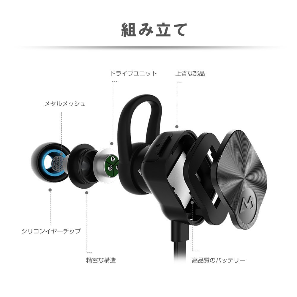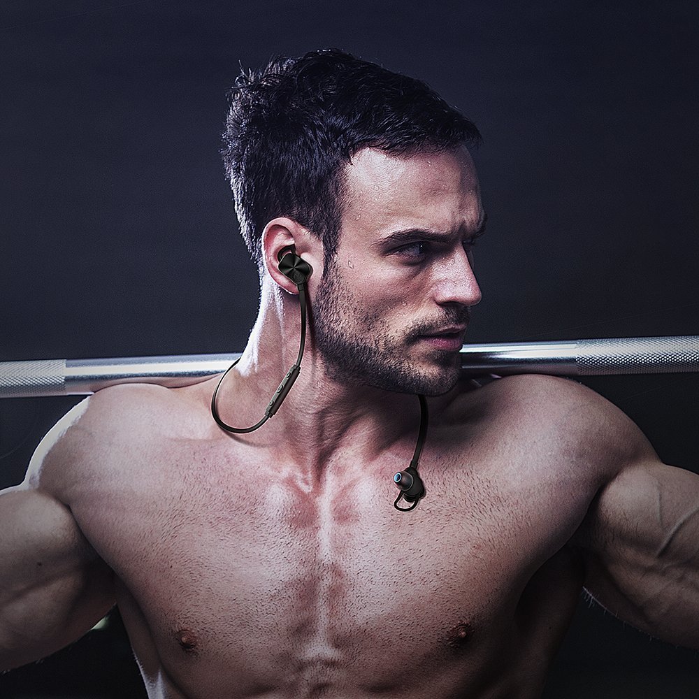 Mpow Wolverine Bluetooth 4.1 Sports headset body back has a metal plate adopted, body is coated with rubber.