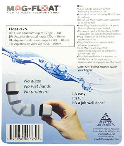 This is a revolutionary magnetic aquarium cleaner, unique because it floats. Its buoyancy makes it easy to operate and is easily guided around corners without sinking. The cleaning brush stays free of sand or gravel, preventing scratching and the strong attracting magnets easily remove algae.Feature