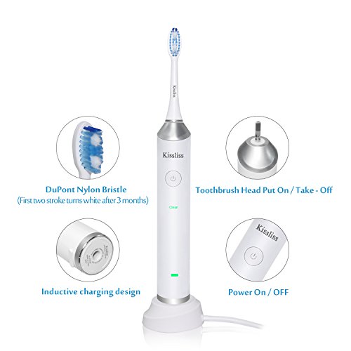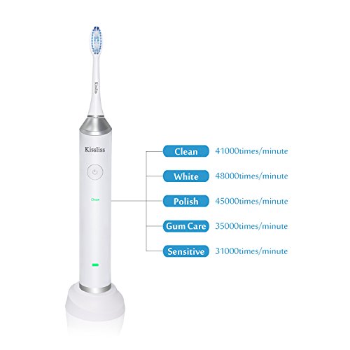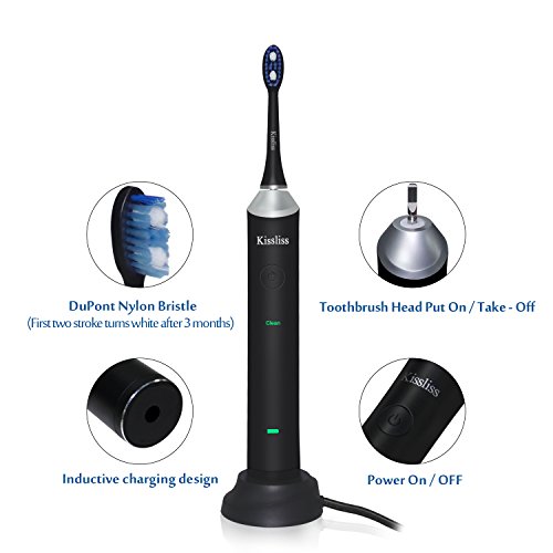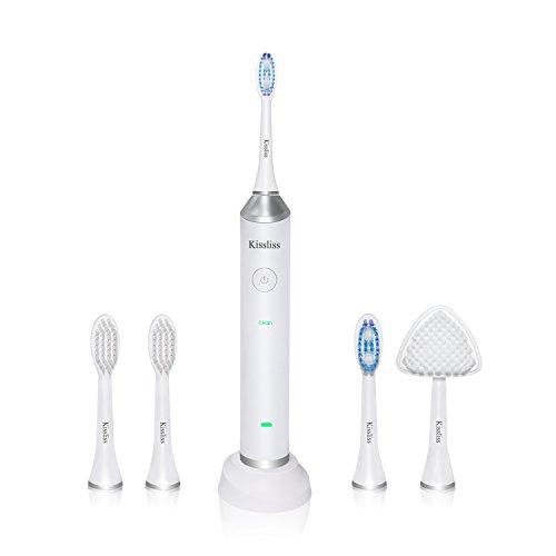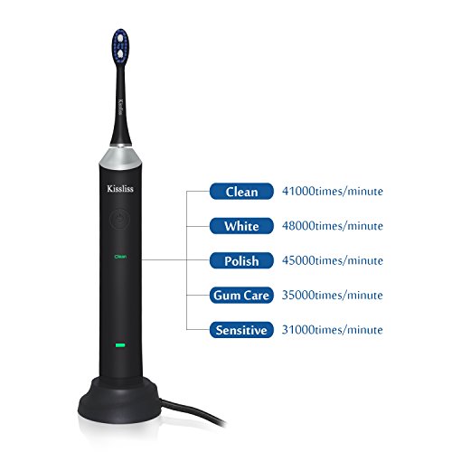 -. Title : Kissliss Rechargeable Electric Toothbrush Sonic-tech 5 Bushing Functions 48,000 Vibrations Rate with 4 Replacement Brush Heads and 1 Facial Head - Black