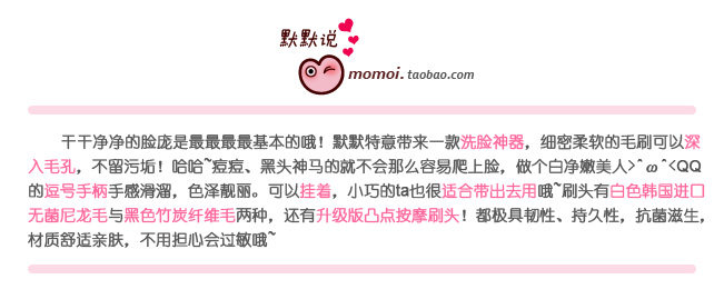 宝贝名称洗脸神器!靓丽韩版小巧洁面刷    材   质  尼龙毛/竹炭纤维