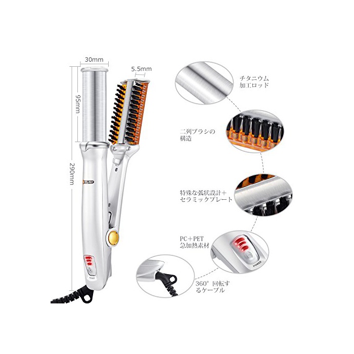 【최신인 디자인 매직】전동식+360℃자동 회전+32mm티타늄 가공 로드+특수한 호상설계+세라믹 플레이트+2 열브러시의 구조+가 도대체(일체)가 되고, PC+PET소재를 채용 하고 있으므로,고속 가열 기능으로 30초에 따뜻해지고, 짧은 시간에 여러가지 헤어 스타일링 가능.정전기 방지,말썽(분규) 해제,아름답고 스타일링 성과,머리를 건강하게.